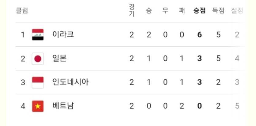 일본 인도네시아 무승부 = 골득실로 조 2위