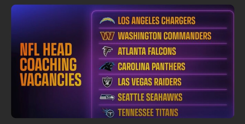 현재 감독 공석인 NFL 7팀