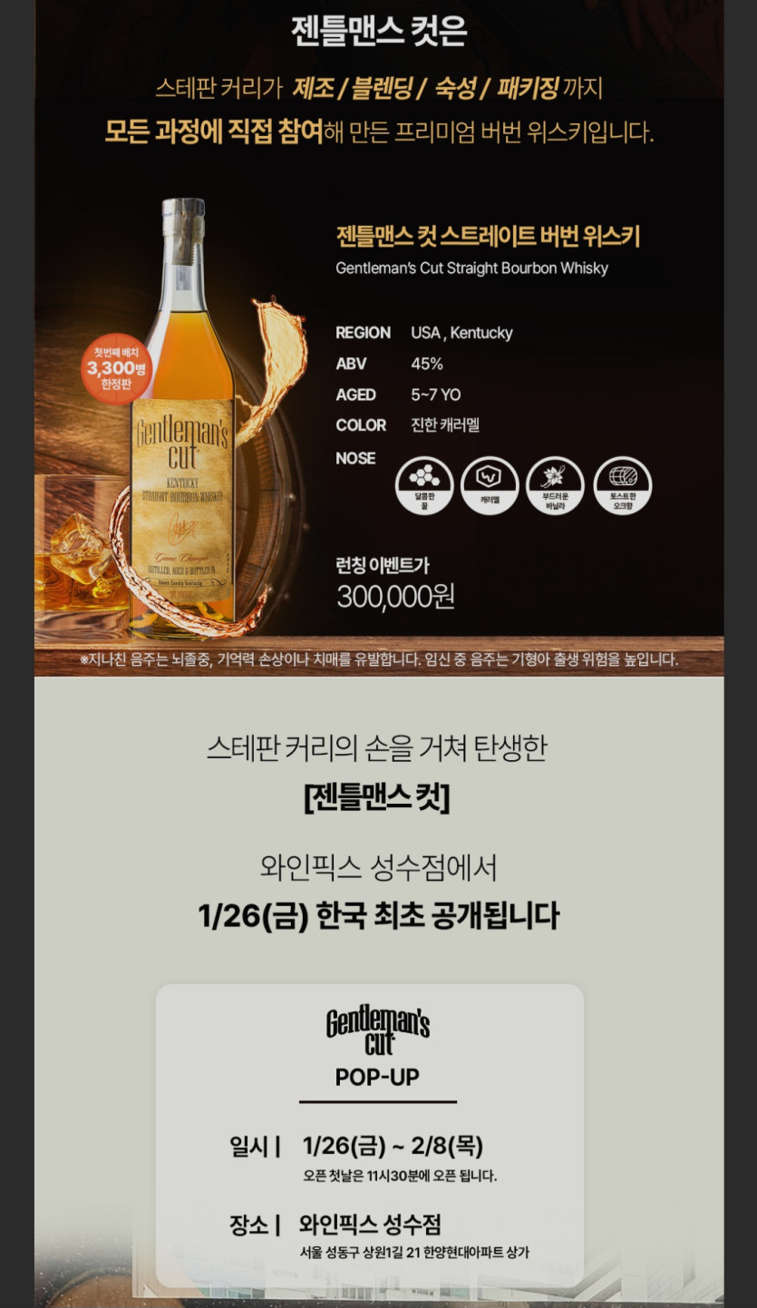 스테판 커리가 만든 프리미엄 버번 위스키 [젠틀맨스 컷] 한국 첫 출시