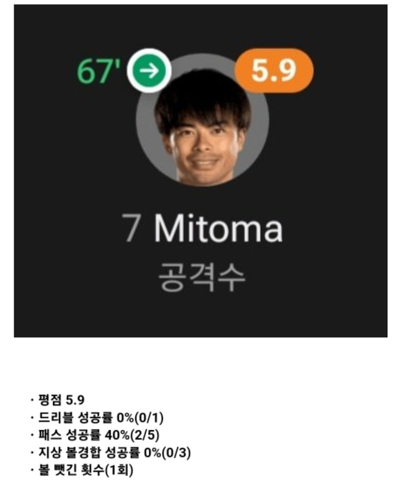 미토마 이란전 스탯