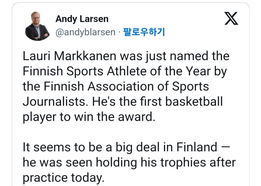 핀란드 스포츠 기자협회가 선정한 올해의 핀란드 스포츠 선수로 선정된 라우리 마카넨