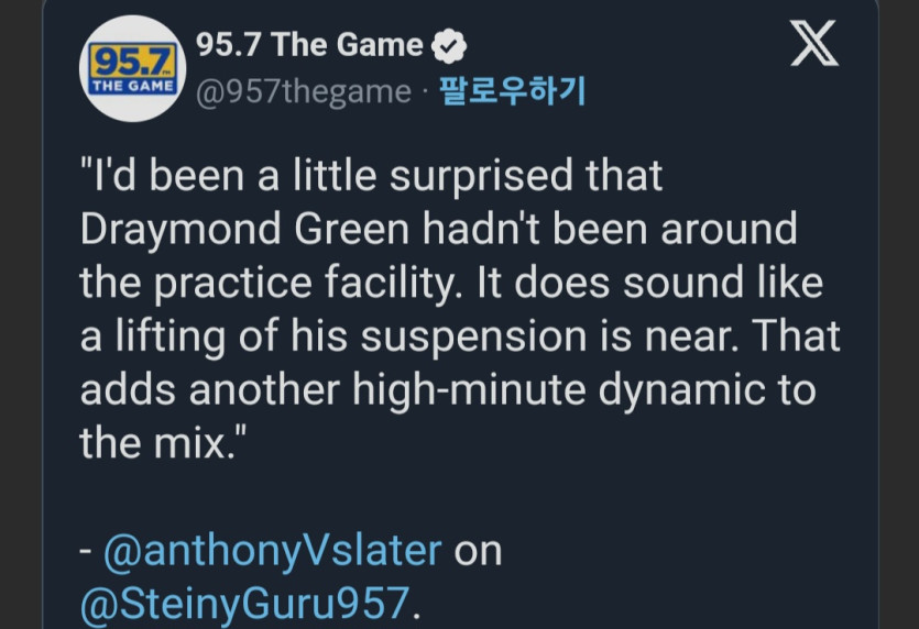출전정지 징계 해제가 가까워진 것으로 보이는 드레이먼드 그린