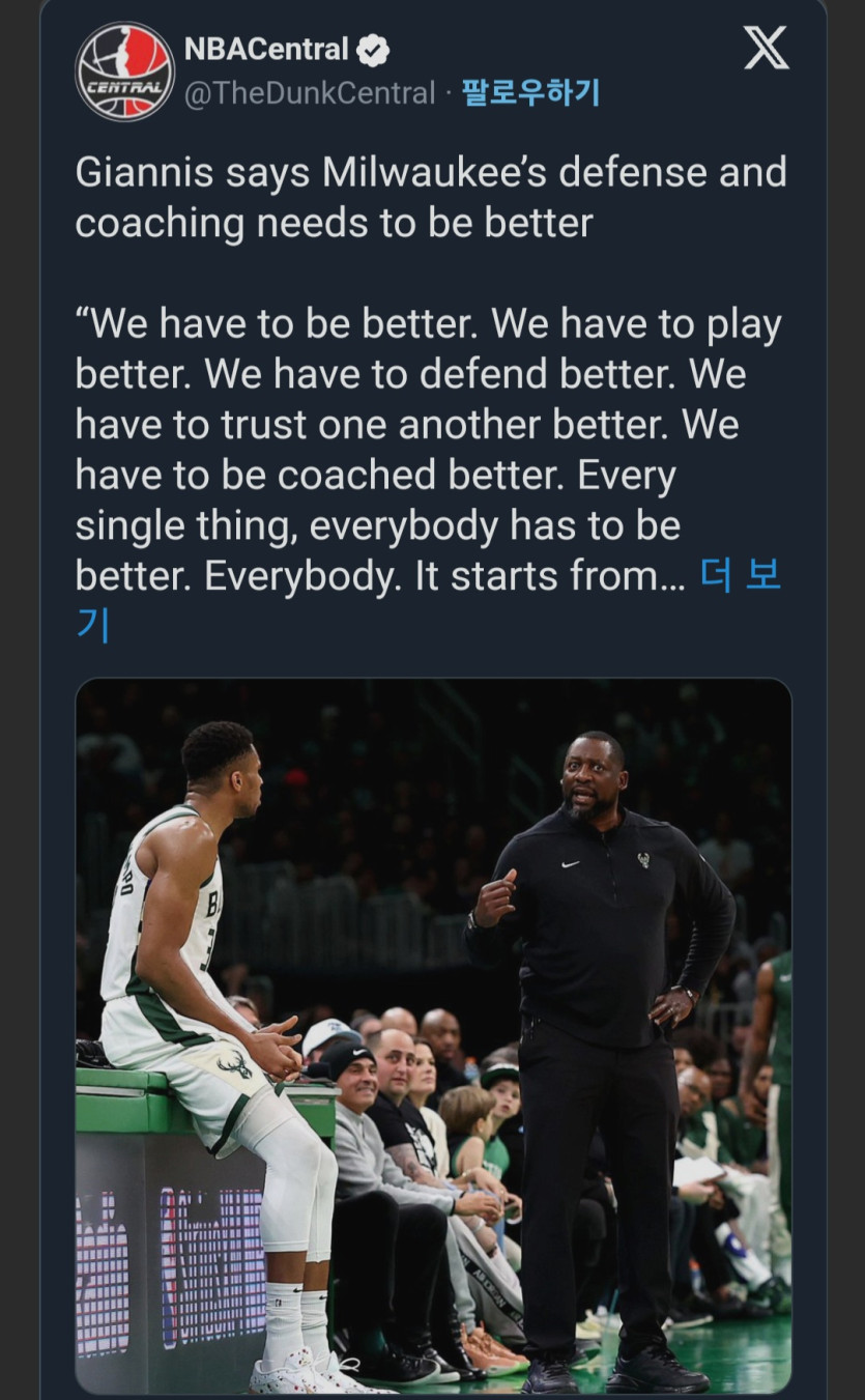 수비와 코칭 등 팀이 모든 부분에서 더 잘해야 한다고 언급한 아니스 아테토쿤보