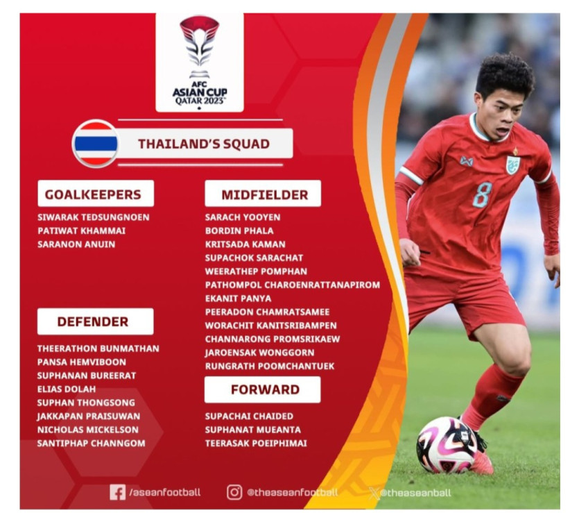 [아시안컵] 태국 최종명단
