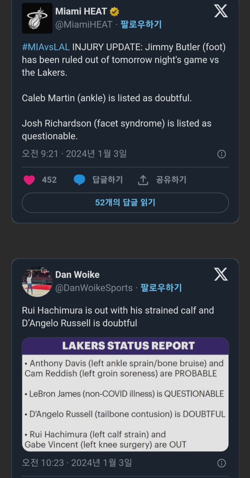 지미 버틀러 하치무라 결장, 케일럽 마틴 조쉬 리차드슨 르브론 퀘스처너블