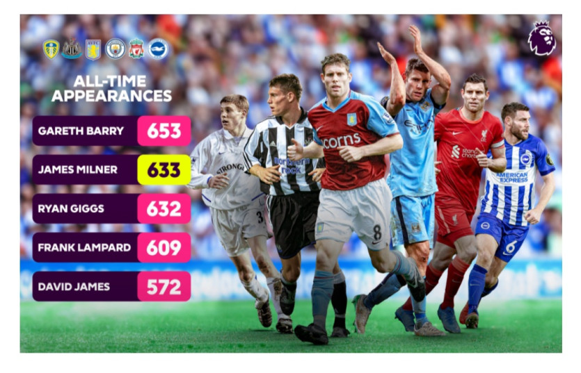 pic) 제임스 밀너, 긱스를 제치고 PL 역대 최다 출전선수 2위 달성