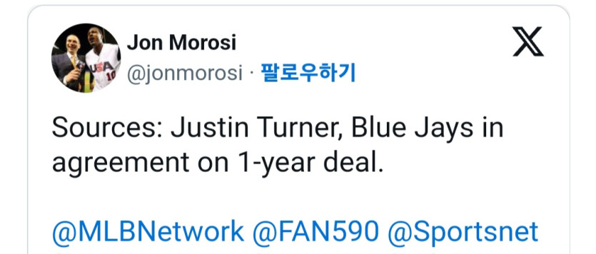 저스틴 터너, 토론토 블루제이스와 1년 계약